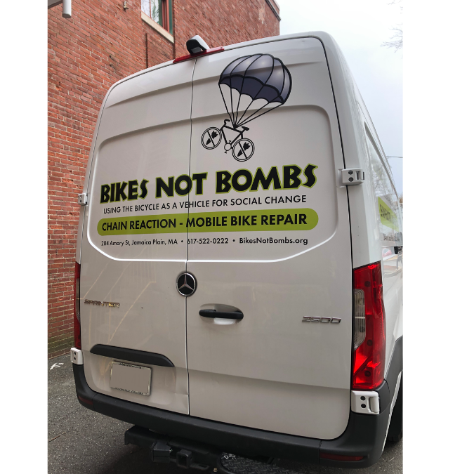 Our professional bike techs work alongside Bikes Not Bombs’ Youth Apprentice Mechanics, helping them sharpen their professional and technical skills. Chain Reaction serves Bikes Not Bombs’ mission of social justice and economic mobility by both directly helping people in need of a flat fix or safety check, while at the same time giving our apprentices opportunities to develop valuable and transferable skills through meaningful community work. Our new mobile capabilities will enable us to bring professional bicycle services anywhere within Greater Boston, so whether you live near a bike shop or not, we’re shrinking the distance between you and a freshly serviced bicycle.