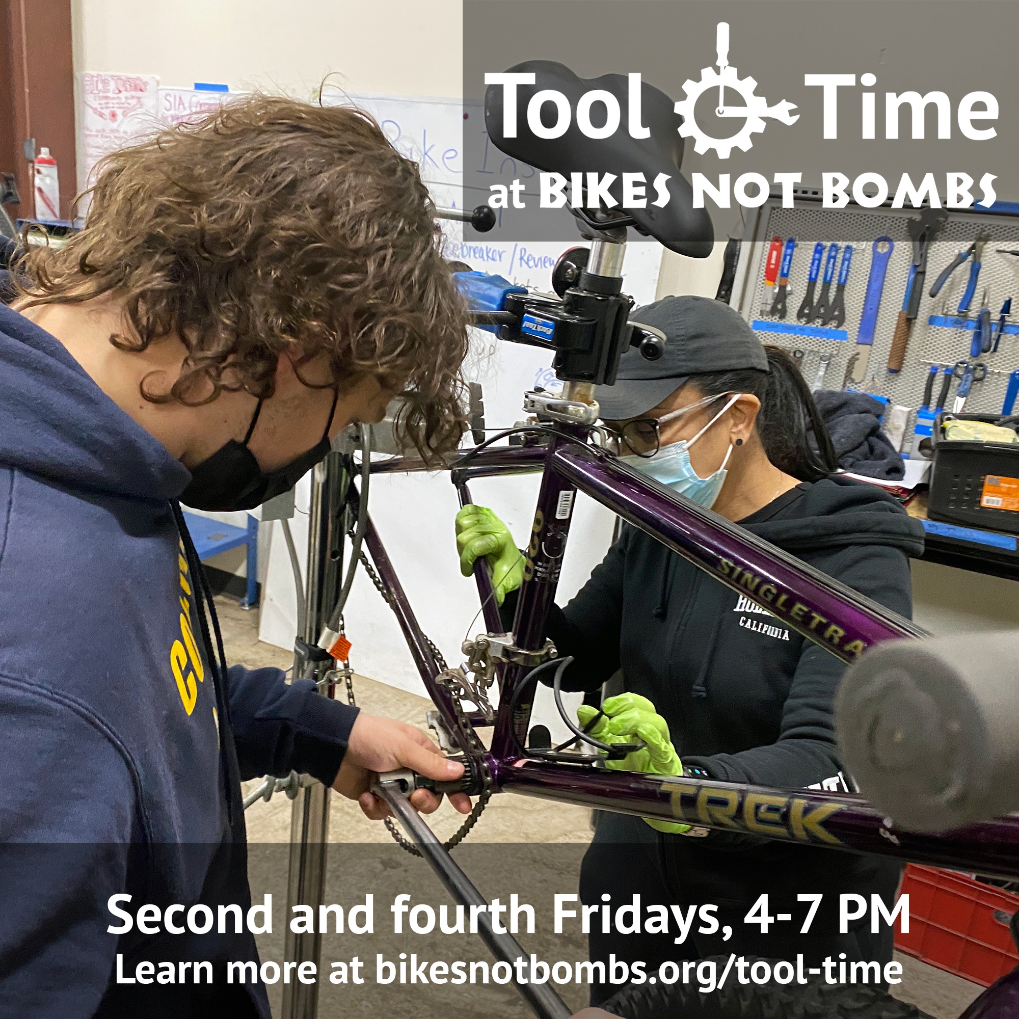 Bikes Not Bombs’ trained Youth Mechanics will be able to assist any Tool Time participants during this time. No experience is necessary! We welcome anybody who wishes to explore their curiosity in how tools and bicycle components interact. You bring the bike and the supplies, we have the tools and the space.