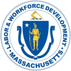 Logo showing the Massachusetts seal with words added that read: Labor & Workforce Development