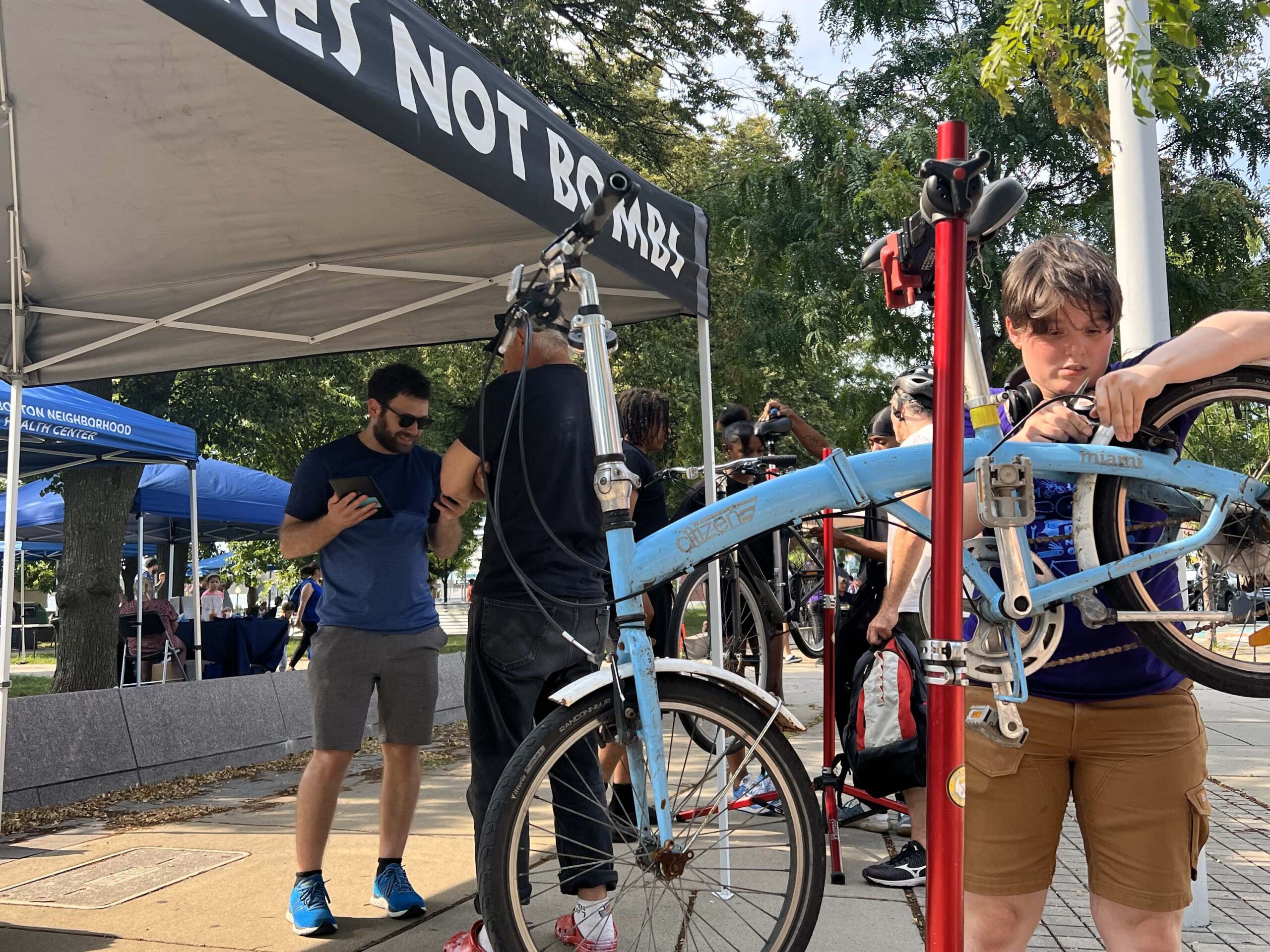 Bikes Not Bombs (BNB) is a Boston nonprofit that uses bicycles as vehicles for social change to increase economic mobility for Black and other marginalized people in Boston and the Global South. Since our founding in 1984, BNB has collected thousands of donated bikes each year, which we repurpose by shipping bikes, parts and tools to international partners in Africa, Central America, and the Caribbean. We also use these bicycles in our innovative youth development programs, where hundreds of youth each year earn bikes they have learned to refurbish, and then become eligible for a three-year paid Youth Apprenticeship at BNB. Our mission-driven, full service Bike Shop & Training Center sells new and refurbished bicycles.